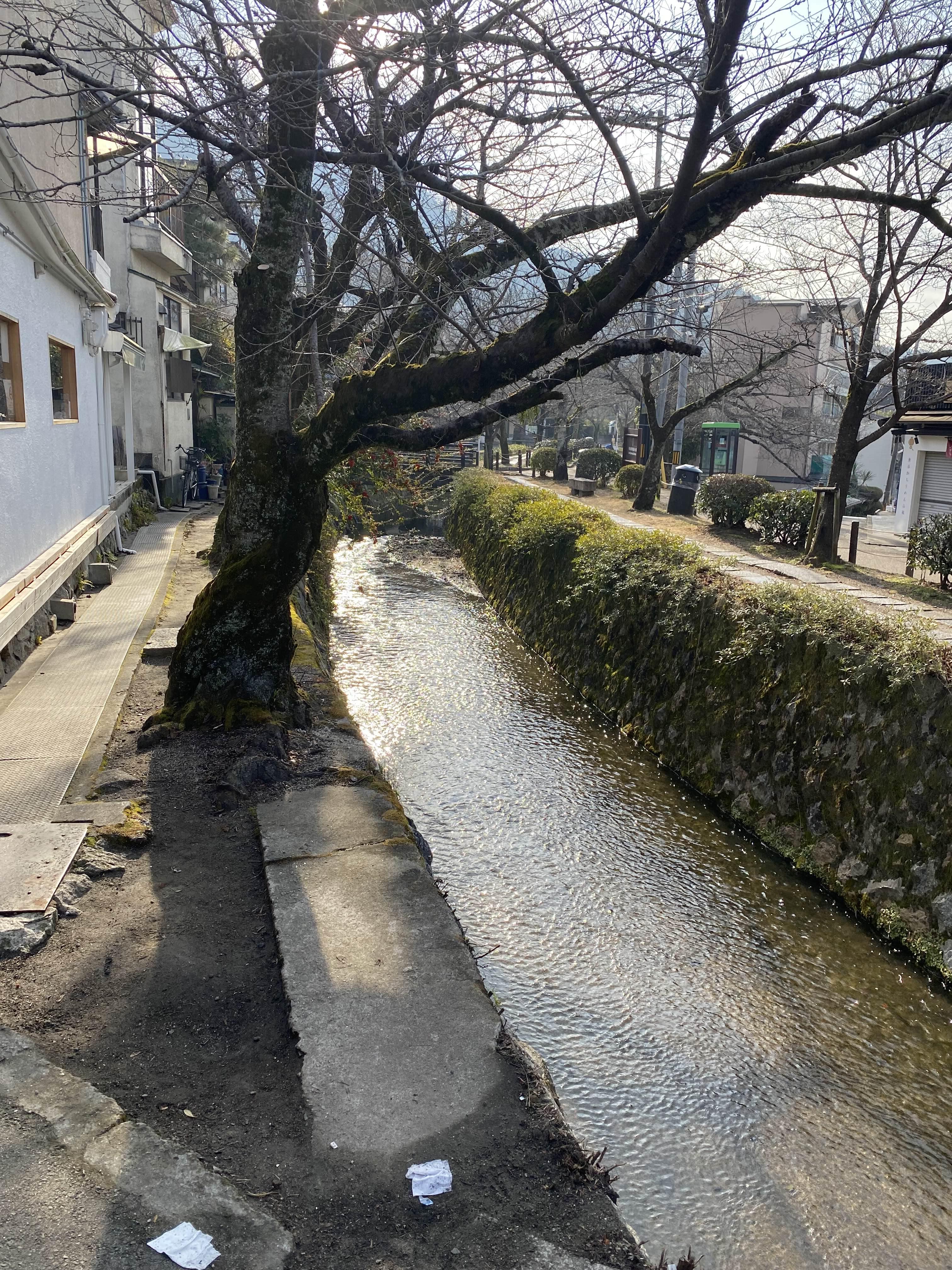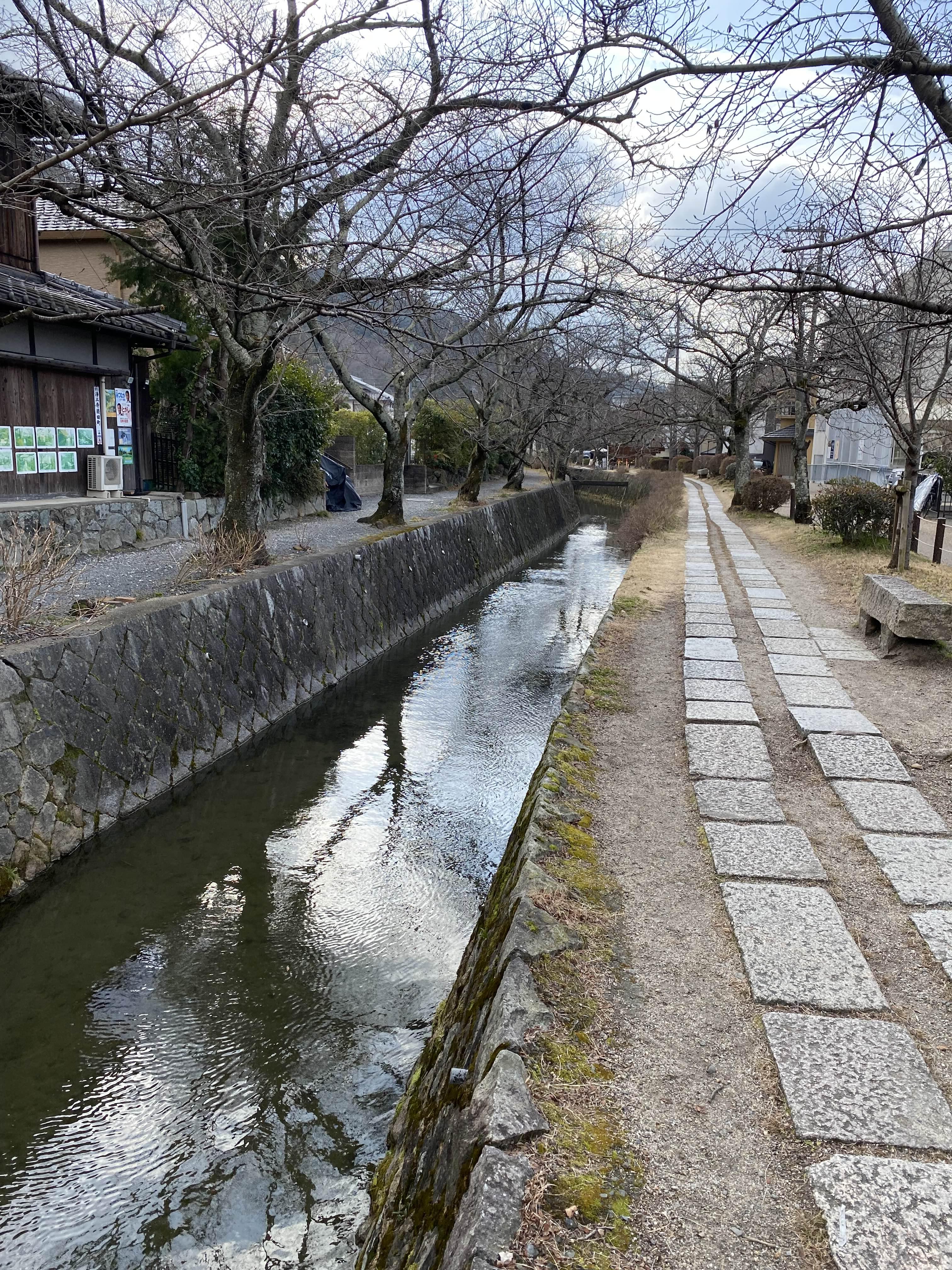 철학의 길은 작은 천을 사이에 두고 약 2km 정도 계속되는 산책로이다. 이 천의 원류는 비와호수인 것 같다.교토가 엄청나게 물이 풍부한 곳이라는 것은 가는 곳마다 느껴진다. 2km 동안 많은 나무가 심어져있는데 대게가 벚나무인 것 같다. 봄에는 벚꽃, 여름에는 반딧불이, 가을에는 단풍, 그리고 겨울에는 설경을 볼 수 있다고 한다. 많은 관광객들이 몰려오는 곳인 것 같다. 겨울 이름 아침에 찾아간 덕에 동네 주민조차 찾아보기 힘들었다. 네이버에 검색해 보면 철학을 전공한 남편이 걷고 싶어했다는 포스트를 볼 수 있는데 이름만으로도 살찍 웃음이 나오는 길이기도 했다. 하지만 철학의 길은 다른 관광지와는 다르게 공짜다. 이름은 허세 가득해 보이지만 우리가 볼 수 있는 건 훨씬 더 많다. 다음에 가게 된다면 조금 더 여유를 갖고 걸어보고 싶은 길이다.
