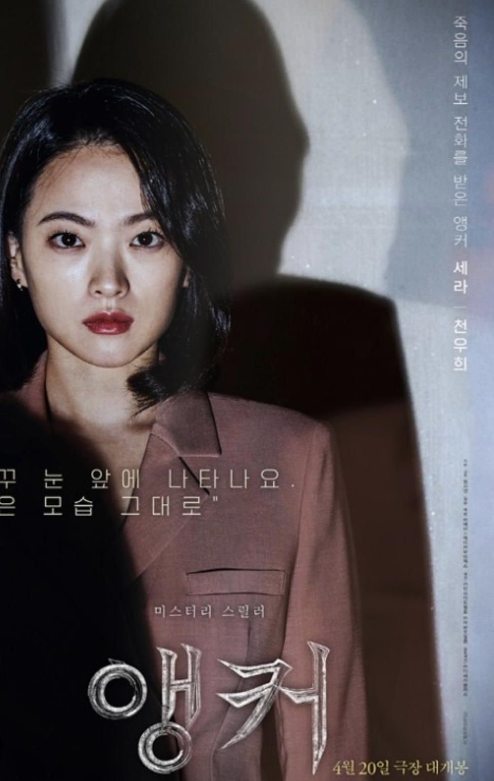 뉴스를 만들어 내기 위해서 각자의 역할이 있을 것이다. 기자는 취재원을 만나거나 배포된 보도자료를 보고 취재를 하고, 촬영과 편집을 하는 사람들이 있고, 생방송을 준비하는 제작진이 있을테고, 앵커는 이 모든 준비된 것들을 시청자에게 전달한다. 간혹 거기에 자신의 생각을 얹기도 하고 파이터처럼 화를 내는 사람도 있다. 앵커라고 하면 JTBC의 손석희 같은 이미지가 아닐까 싶다. 영화 앵커에 대한 불만이 있다면 앵커가 직접 취재를 하러 가는 점이었다. 추가적으로 앵커 머리를 한 천우희가 그간 나왔던 영화에 비해서 좀 예쁘지 않은 것 아닌가 싶다. 그리고 발성이나 발음이 mbn의 김주하 앵커를 롤모델로 삼은 것인가 싶은데 많이 어색해 보인다. 뉴스를 하는 부분은 빼고 모든 연기는 완벽했다. 그리고 또 정신과 의사의 의무감과 죄책감이 굉장하다 싶다. 환자 죽음의 이유를 파헤치기 위해 범죄현장까지 들어가는 것은 약간 현실감이 없어 보인다.