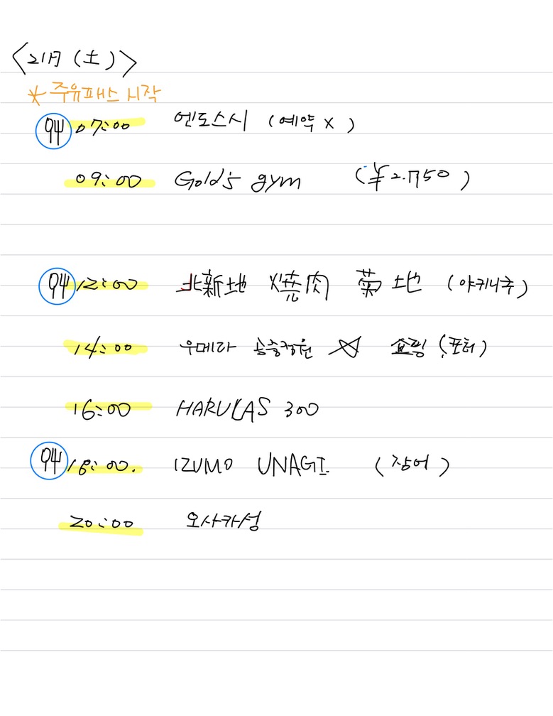 실제 2박3일 동안 내가 계획한 스케쥴을 보자.